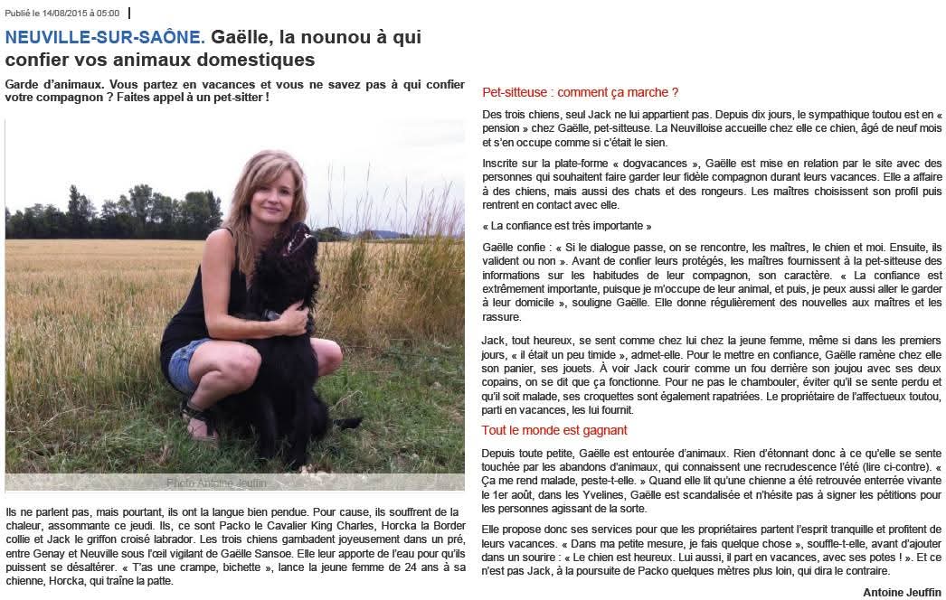 Depuis 2014 j'ai croisé la route de nombreuses familles qui m'ont fait confiance en me confiant leurs chiens, chats et autres animaux. J'ai même eu le droit à un article dans le Progrès lorsque j'étais située dans le Rhône! Depuis, le monde du Pet sitting a évolué.